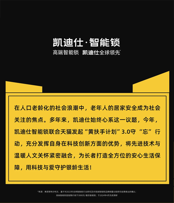 凱迪仕聯合天貓發起“黃扶手計劃”守“忘”行動,獲“愛心品牌”榮譽,用科技與愛守護銀齡生活!